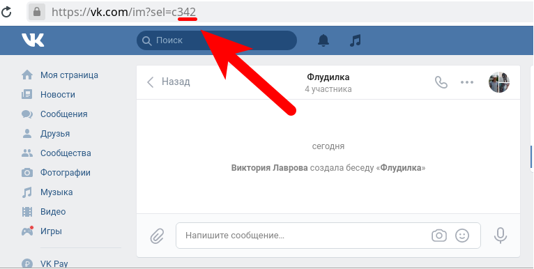 3. А адресной строке цифры, которые идут после sel=c, являются ID беседы.